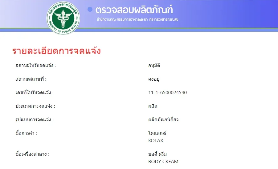 - ชี้แจง: ผลิตภัณฑ์นี้ได้รับการขึ้นทะเบียนจาก กระทรวงสาธารณสุขไทย เลขที่ 11-1-6500024540 แล้ว ซึ่งแสดงถึงมาตรฐานความปลอดภัยในระดับหนึ่ง